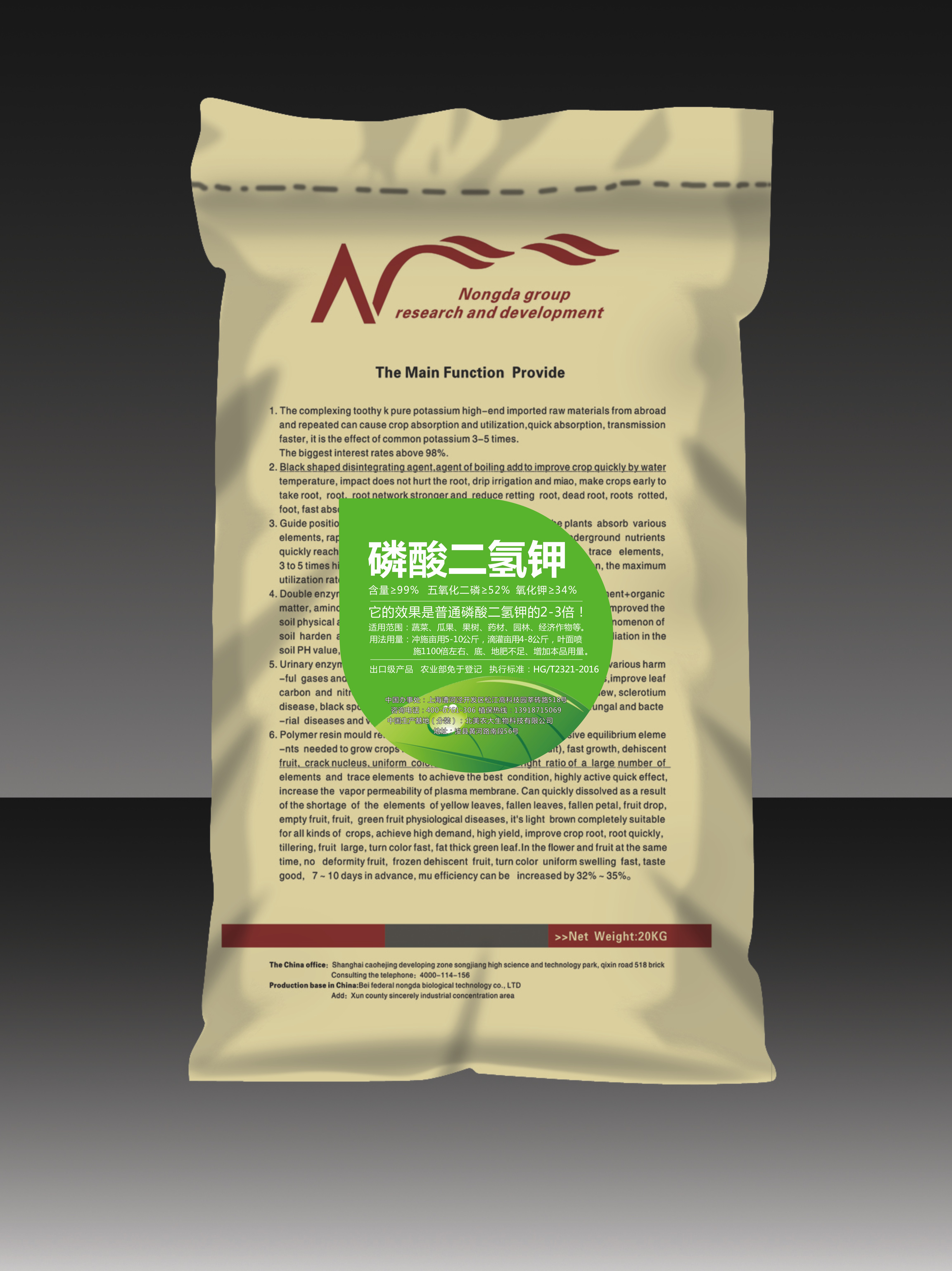 本品是從國外進口高端磷酸二氫鉀,能促使作物重復吸收和利用,吸收快、傳導更快、它的效果是普通磷酸二氫鉀的2-3倍。最大利用率達到99%以上。聯(lián)農(nóng)瑞豐德集團研發(fā)部與以色列水溶肥專家和美國土肥專家強強聯(lián)合。根據(jù)中國不同種作物在苗期、生長期、膨果期、膨大期、轉色期需要不同元素,有針對性聯(lián)合研發(fā)的生根苗期、壯桿壯秧生長、膨果、膨大、轉色特效肥。