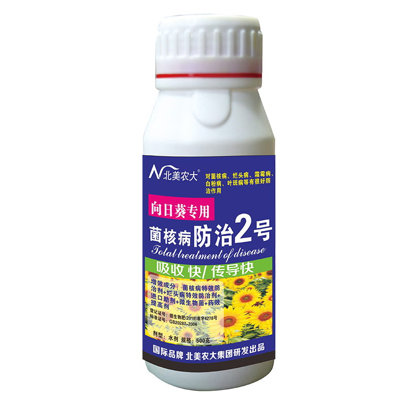 本品由北美農(nóng)大集團(tuán)與中國農(nóng)科院針對向日葵容易引起抗性強(qiáng)的菌核病、爛頭病、霜霉病、白粉病、葉斑病等,而研發(fā)的一種殺菌快、傳導(dǎo)快、雙重營養(yǎng)特效防治病害產(chǎn)品,對作物一秒鐘殺菌,3秒鐘補(bǔ)充營養(yǎng),10分鐘傳導(dǎo)在作物各個(gè)部位,防治效果是同類普通產(chǎn)品的3-5倍,使作物重復(fù)殺菌,以菌治菌、以菌殺菌、一菌感染、菌菌必死的獨(dú)特防治效果。